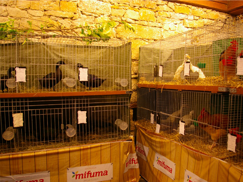 Zur Auswahl stehen Hühner, Enten, Gänse, Tauben und Kaninchen mit hunderten verschiedener Möglichkeiten von Rassen und Farbenschlägen.